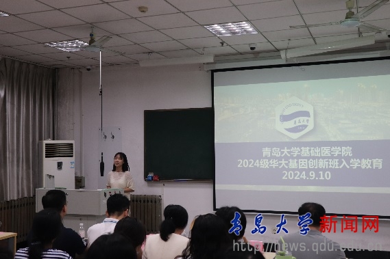 新聞網訊 為指導和幫助2024級新生盡快了解和適應新環境、明確學習目的,引導新生更快端正學習態度、增強學習動力、科學規劃學習生活,9月10日,青島大學基礎醫學院在浩園104教室為2024級華大基因創新班入學教育活動。青島華大基因研究院副研究員徐夢陽、基礎醫學院黨委書記亓慧、副院長(主持工作)張蓓、黨委副書記章敏、副院長李尚勇、新生輔導員邊泳名和2024級新生參加了本次活動。