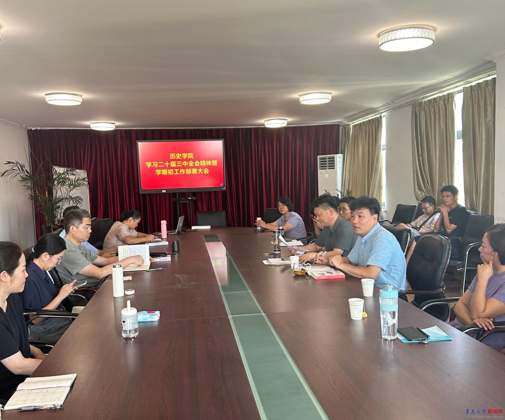 新聞網訊 9月11日上午,歷史學院在德潤樓404會議室召開學習黨的二十屆三中全會精神暨學期初工作部署大會。大會由學院黨委書記劉宗國主持,學院領導班子成員以及全體教職工參加會議。