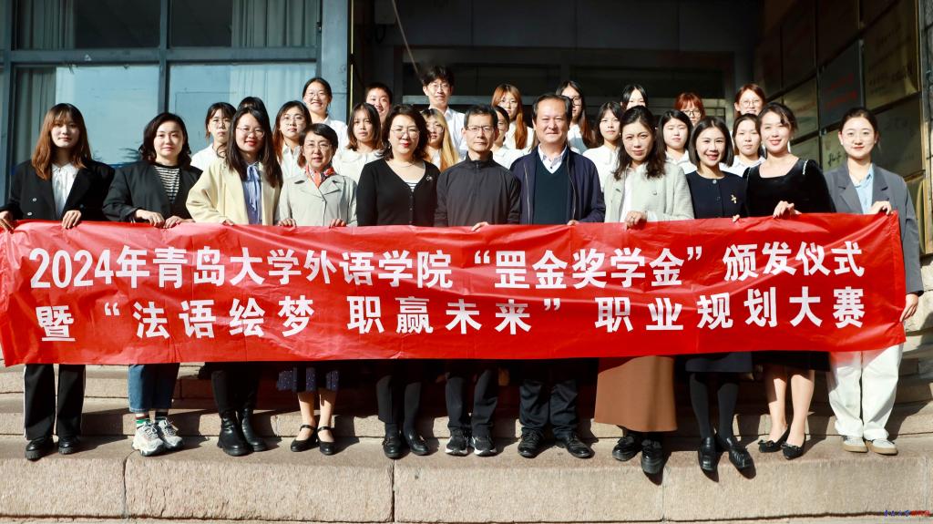 新聞網(wǎng)訊 10月31日下午,外語學(xué)院2024年“罡金獎(jiǎng)學(xué)金”頒發(fā)儀式在博文樓312教室隆重舉行。青島罡金國際合作服務(wù)有限公司總經(jīng)理夏綱舉、人力部副經(jīng)理劉玉媛,學(xué)校合作發(fā)展處、學(xué)生工作處及外語學(xué)院負(fù)責(zé)人參加儀式。儀式由外語學(xué)院黨委副書記于苗主持。