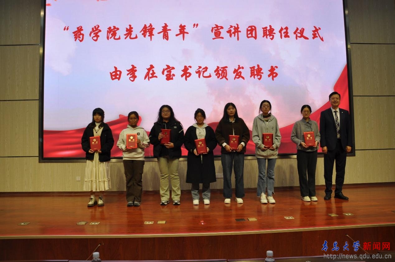 隨后,舉行“藥學(xué)先鋒青年”宣講團(tuán)聘任儀式,李在寶書記為首屆宣講團(tuán)七位成員頒發(fā)聘書。