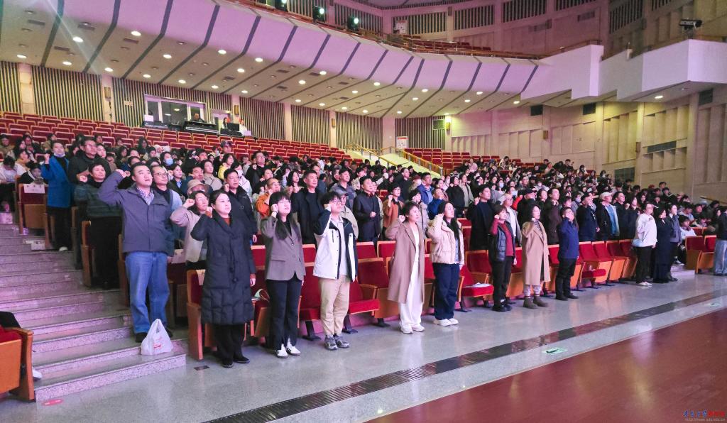 在王靜怡院長的領誓下,全體教職工重溫青島大學教師誓詞。