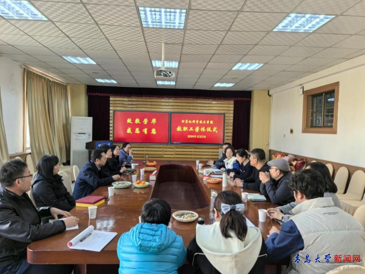 榮休教職工代表趙書鵬、劉虹、李朝暉先后發言,他們回顧了在青島大學教書育人近四十年的歷程,分享了寶貴的工作經驗,表達了對學校學院的熱愛和不舍之情,表示今后會繼續關注學院發展動向,希望有機會能為學院事業發展繼續貢獻自己的力量。
