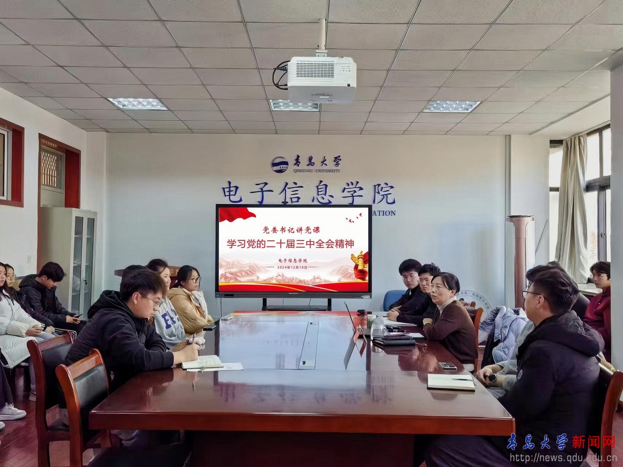 新聞網訊 為強化黨的理論武裝、提升黨員黨性修養、引導師生樹立正確價值觀,12月18日下午,電子信息學院在誠思樓407開展“書記講黨課”活動。學院黨委書記孫麗娜、黨委副書記劉孝群、2022級輔導員陳勝發出席此次活動,各年級學生黨員及入黨積極分子參加此次活動,活動由孫麗娜書記主持。