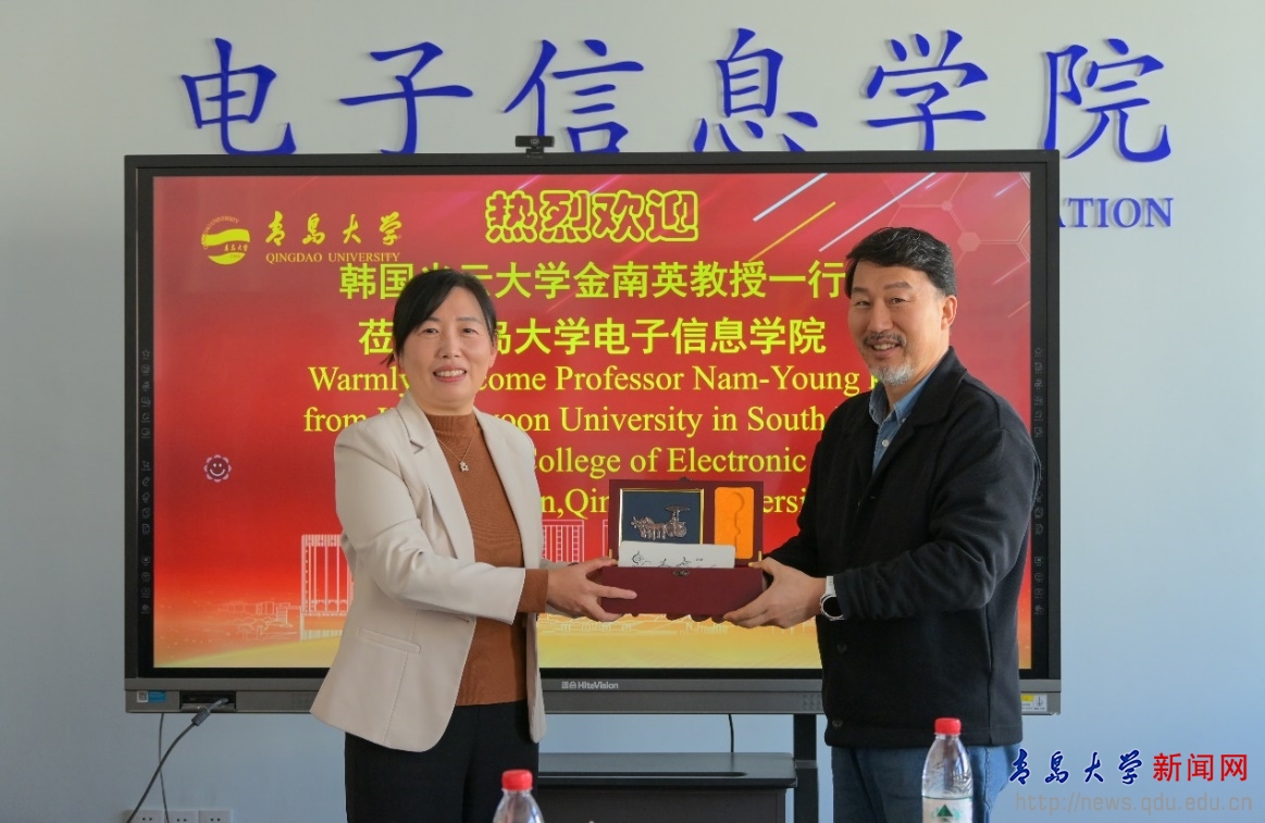 金南英向電子信息學(xué)院對(duì)雙方合作做出的努力表示感謝,對(duì)青島大學(xué)在微納傳感器、集成電路、人工智能等前沿領(lǐng)域所取得的研究成果給予高度評(píng)價(jià)。他表示,光云大學(xué)作為韓國(guó)頂尖的工科院校,近年來(lái)持續(xù)推進(jìn)國(guó)際合作戰(zhàn)略,致力于為學(xué)生提供更廣闊的發(fā)展空間,希望通過(guò)雙方資源互補(bǔ),在學(xué)生聯(lián)合培養(yǎng)、共建實(shí)驗(yàn)室等方面開(kāi)展深入合作,并共同探索產(chǎn)學(xué)研融合的創(chuàng)新路徑,為推動(dòng)電子信息領(lǐng)域的發(fā)展貢獻(xiàn)力量。