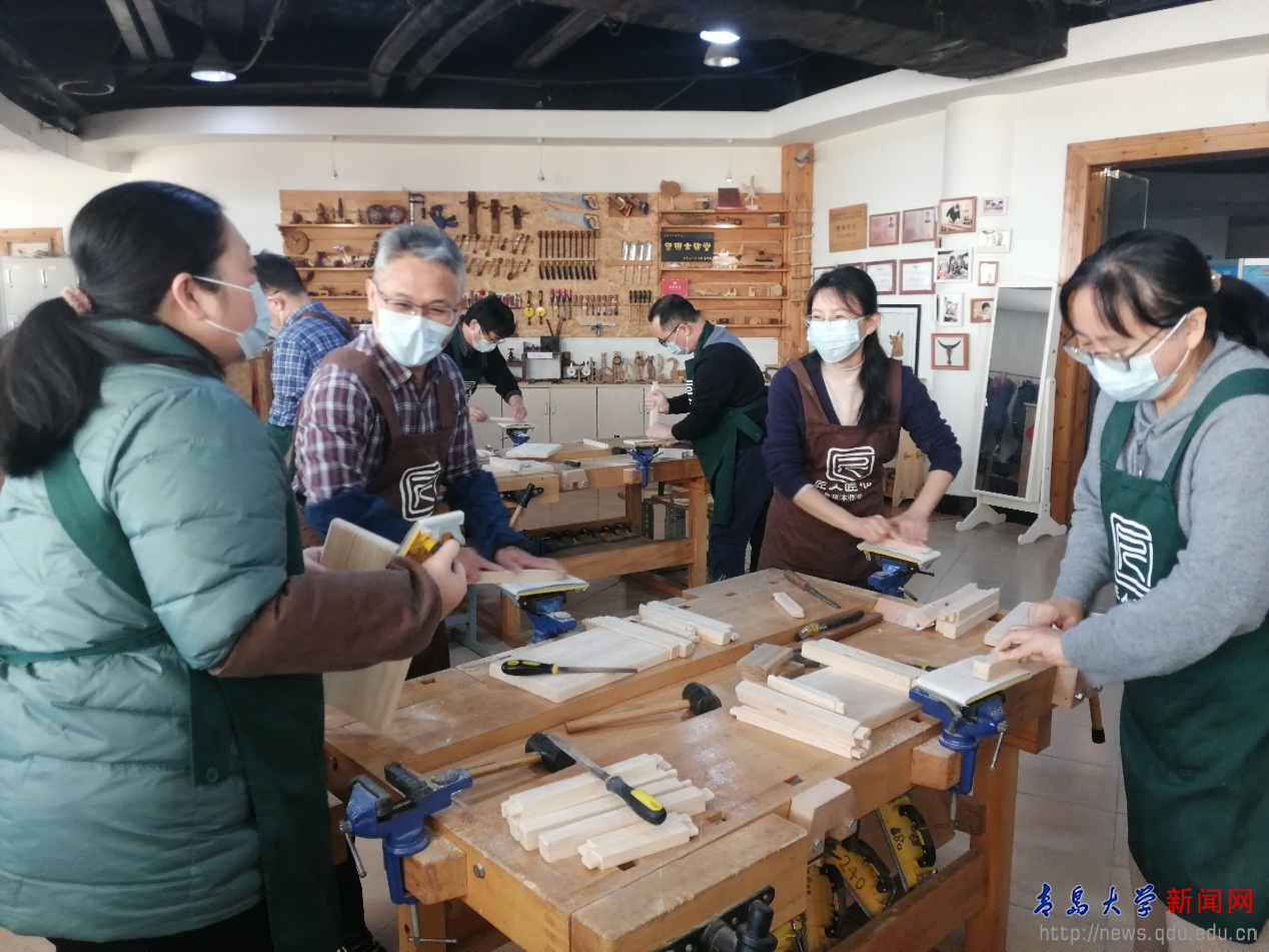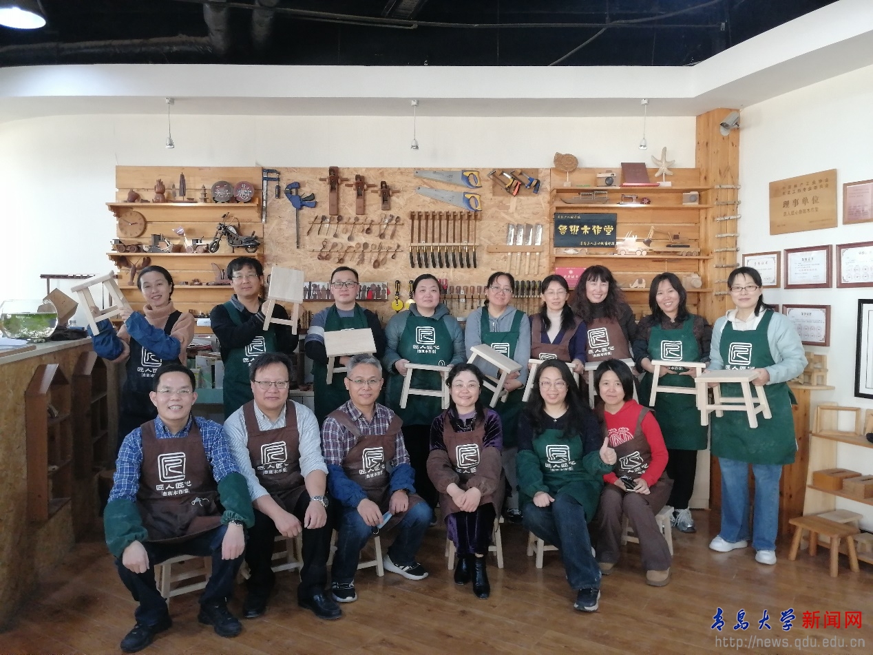本次活動中,學院教職工走進“魯班木作堂”,在木工專家的講解指導下親手制作木工小板凳。通過木塊打磨、榫卯拼接、乳膠加固、插接成型、后期修整等工藝流程,大家都成功地完成了自己的作品。