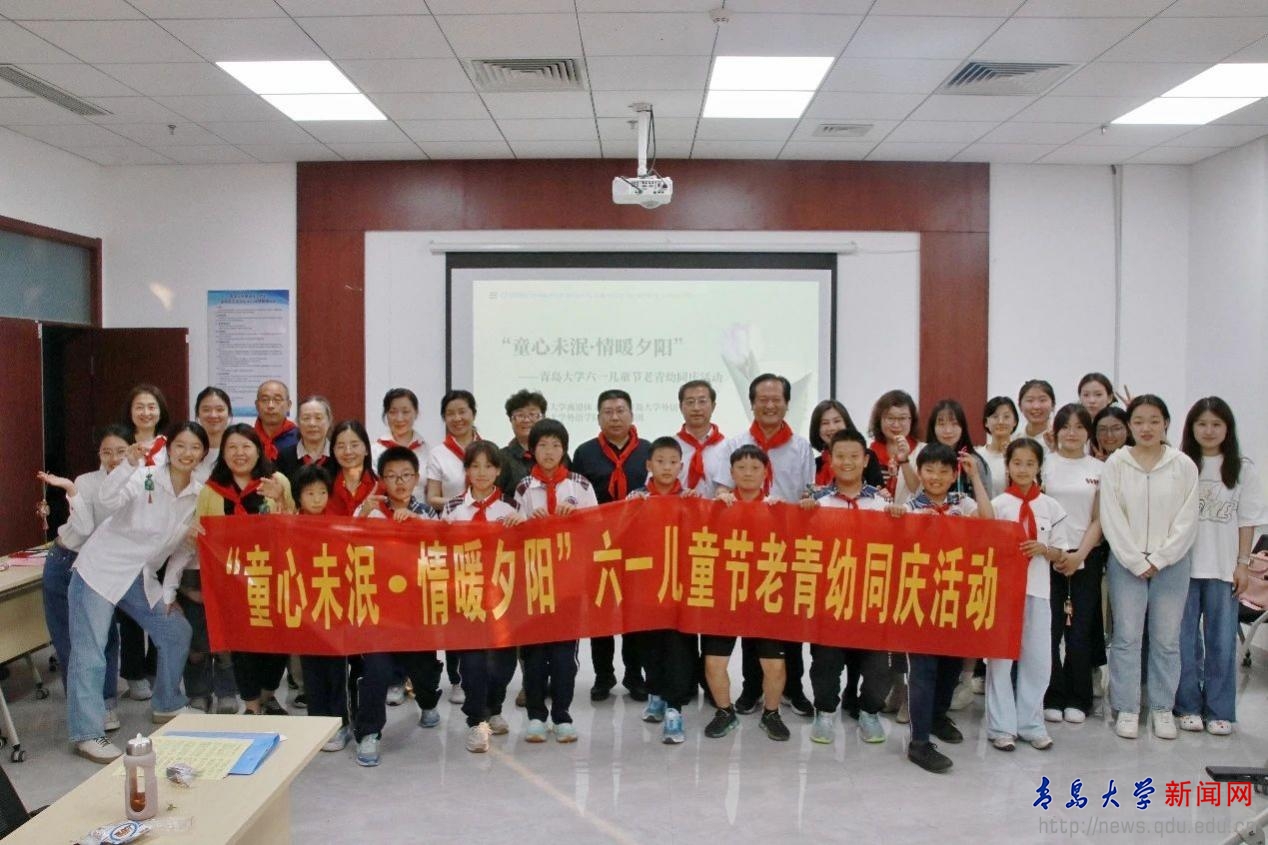 新聞網訊 5月29日下午,外語學院聯合離退休工作處在浮山校區文化藝術樓B座黨建活動室共同舉辦“童心未泯,情暖夕陽----老青幼同慶六一”活動。離退休工作處處長宋佐東、副處長周志強、外語學院副院長王薇及離退休教師、外語學院學生及青島天山小學學生代表三代人共聚一堂,以一場跨越年齡的溫情對話,用藝術展演、文化體驗與代際互動的方式,共同慶祝這個別樣的六一兒童節。