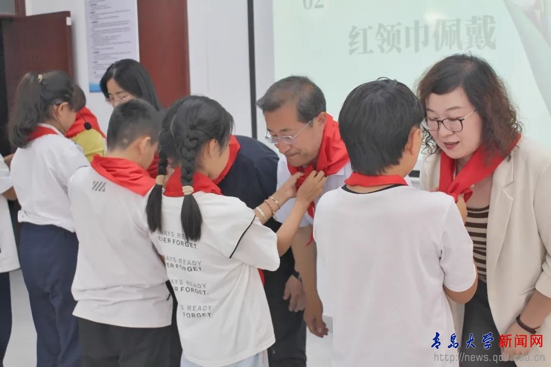 活動伊始,天山小學的學生代表為與會老師們佩戴紅領巾,現場氣氛熱烈而溫馨。在時代故事分享環節,退休教師許敏、顧曉梅回憶童年故事,并結合自身經歷,講述奮斗歲月中的堅守與熱愛。風采展示環節,離退休老教師朗誦協會以一首《我和祖國一起飛》的激昂誦讀,展現家國情懷;天山小學學生用民族特色畫作,勾勒出五彩斑斕的童真世界;外語學院iStep夢想合唱團以一曲《少年》,唱響青春的朝氣與夢想。