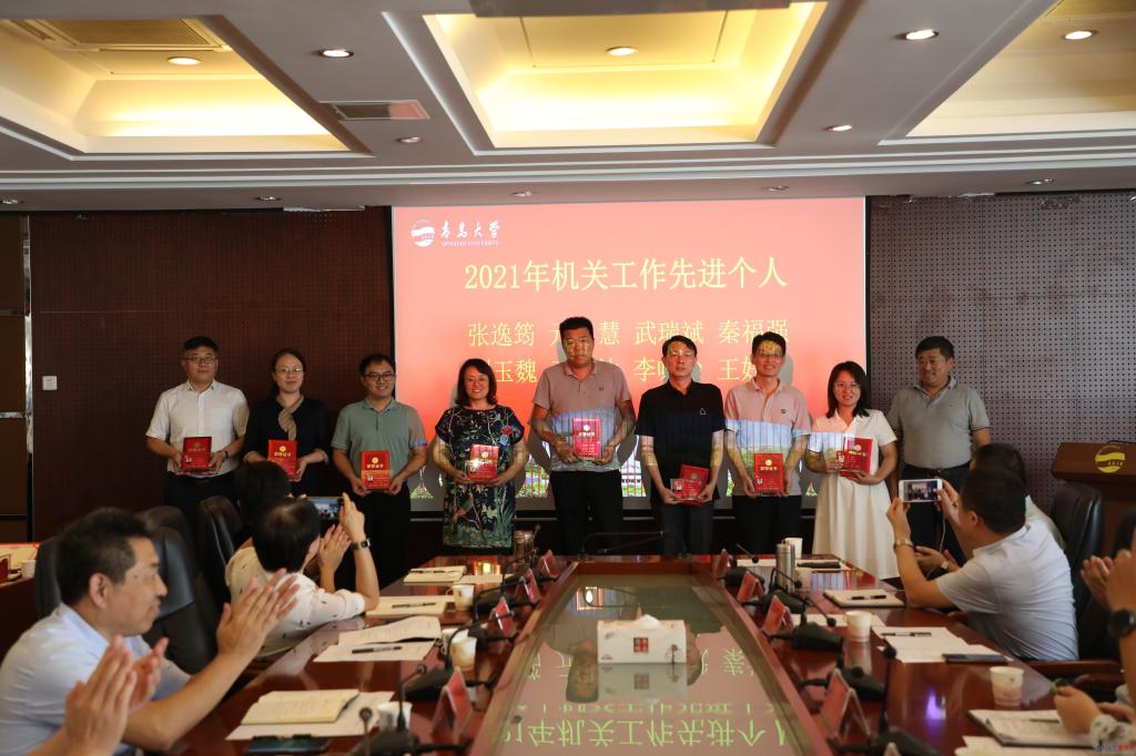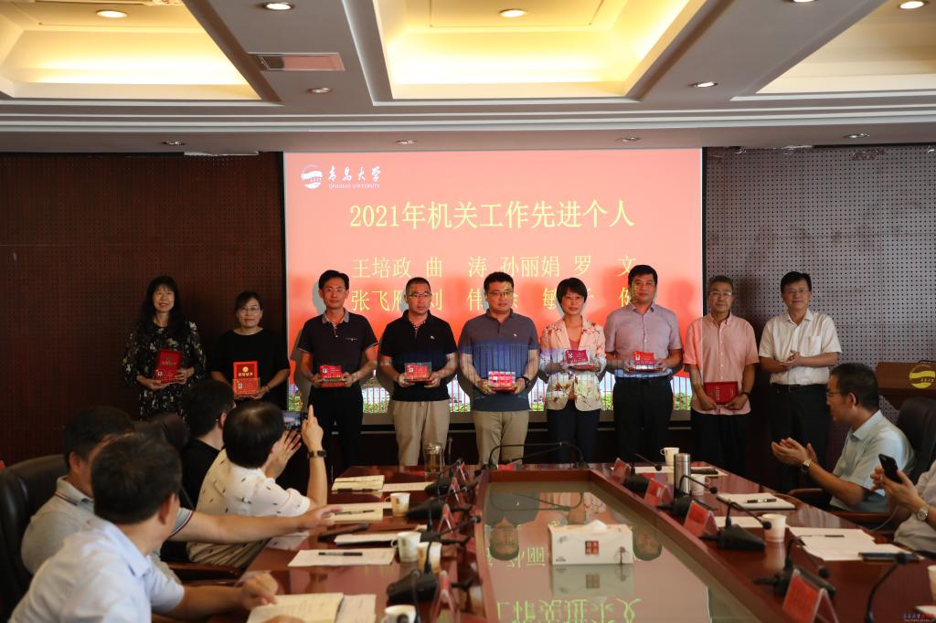 校黨委常委、組織部部長兼校部機關(guān)黨委書記徐龍飛總結(jié)了上半年工作,并就做好下一步工作進(jìn)行了部署。他指出要不斷加強政治機關(guān)建設(shè),推動機關(guān)黨建高質(zhì)量發(fā)展。一是要深化理論學(xué)習(xí)。深入學(xué)習(xí)習(xí)近平總書記在慶祝中國共產(chǎn)黨成立100周年大會上的重要講話,以及習(xí)近平總書記在2021年秋季學(xué)期中央黨校(國家行政學(xué)院)中青年干部培訓(xùn)班開班式上的重要講話。按要求開展黨史學(xué)習(xí)教育。二是深化組織建設(shè)。積極開展黨支部標(biāo)準(zhǔn)化規(guī)范化建設(shè),落實好“三會一課”、主題黨日、組織生活會等制度,扎實開展談心談話和民主評議黨員等基礎(chǔ)工作。三是深化干部隊伍建設(shè)。按照“信念堅定、對黨忠誠,注重實際、實事求是,勇于擔(dān)當(dāng)、善于作為,堅持原則、敢于斗爭,嚴(yán)守規(guī)矩、不逾底線,勤學(xué)苦練、增強本領(lǐng)”的要求,持續(xù)推進(jìn)“四型”干部隊伍建設(shè)。注重對干部全方位監(jiān)督管理,做到預(yù)防為先、關(guān)口前移。四是是深化作風(fēng)建設(shè)。著力提升思想作風(fēng)、工作作風(fēng)、生活作風(fēng),將“四型”機關(guān)建設(shè)推向深入。