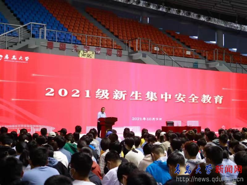 新聞網訊 10月9日上午,我校在浮山校區體育館組織開展2021級新生集中安全教育報告會。報告會包含防疫、防詐騙、防毒品、防溺水四個方面的專題內容,由學生工作處副處長李建新主持。