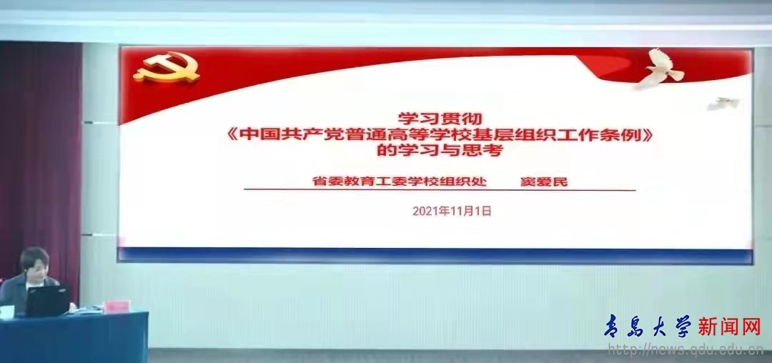 竇愛民指出,要堅(jiān)持把黨的政治建設(shè)擺在首位,把抓好黨建工作作為辦學(xué)治校的基本功,不斷加強(qiáng)高校黨的基層組織建設(shè),使基層黨組織成為師生最貼心、最信賴的組織依靠。充分發(fā)揮師生黨員的先鋒作用,做到在黨愛黨、在黨言黨、在黨為黨。她強(qiáng)調(diào),基層黨組織要不斷提高“政治三力”,創(chuàng)新工作方式方法,努力做遵從《條例》的“責(zé)任人”、把握《條例》的“明白人”、貫徹《條例》的“帶頭人”。