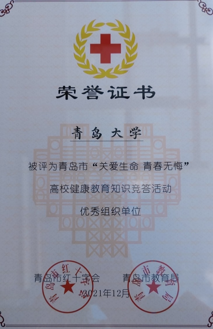 我校獲評青島市“關愛生命 青春無悔”高校健康教育知識競答活動優(yōu)秀組織單位