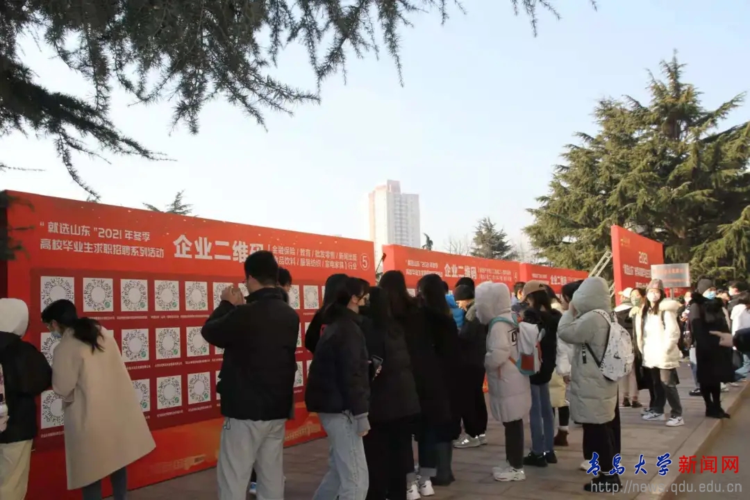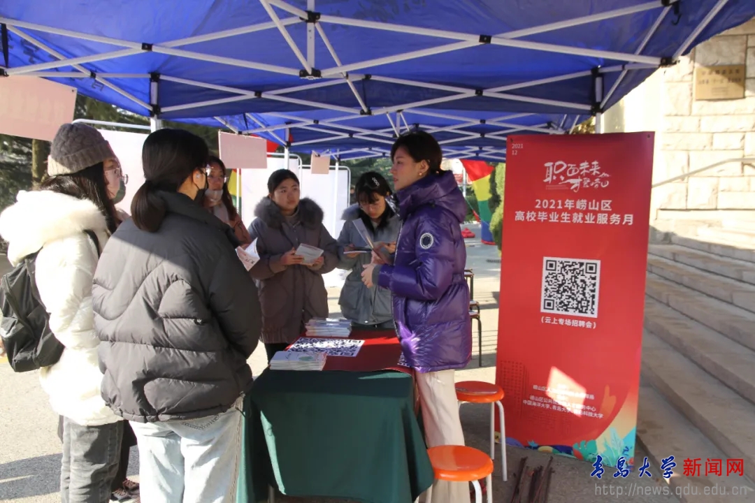 新聞網(wǎng)訊 近日,由山東省教育廳、山東省人力資源和社會保障廳指導(dǎo),青島市人力資源和社會保障局、青島大學(xué)共同主辦的“就選山東”2021年冬季求職招聘系列活動青島大學(xué)專場暨第二批就業(yè)育人雙百基地企業(yè)“碼上”云招聘在青島大學(xué)浮山校區(qū)博文樓前廣場順利舉辦。此次招聘會是我校“雙百驅(qū)動 精準(zhǔn)就業(yè)”2022屆畢業(yè)生“校園招聘月”系列活動之一,設(shè)置33家“雙百”基地企業(yè)、230家企業(yè)HR現(xiàn)場直播視頻互動,匯集15000余個就業(yè)崗位需求。企業(yè)共收取簡歷2000余份,視頻互動交流400余人。