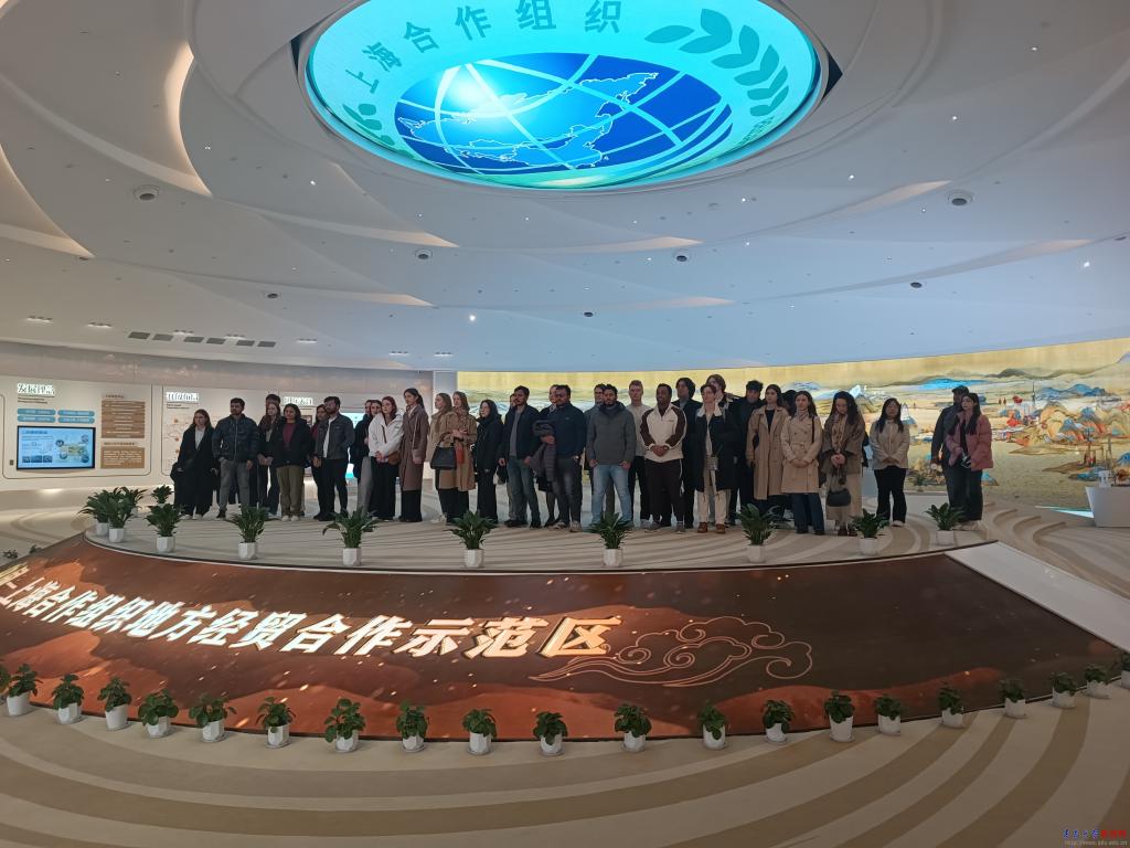 在青島·上合之珠國際博覽中心,留學生們在講解員的帶領下參觀了上合之珠成果展,全面了解上海合作組織發展歷程以及上合示范區在促進上合組織國家間經貿往來的合作成果,并依次打卡上合國家元素館,充分感受上合國家豐富多元的文化特色。