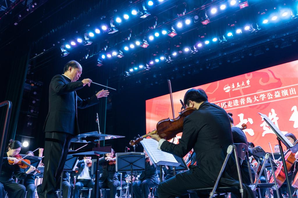 新聞網訊 4月30日下午,由學校黨委宣傳部主辦、校團委承辦的“高雅藝術進校園”音樂會在青島大學劇院順利舉辦。學校特邀青島交響樂團為全校師生帶來一場豐富的聽覺盛宴,近距離感受了高雅藝術的獨特魅力。校直各部門及青島交響樂團主要負責人與七百余名師生代表共同觀看了演出。