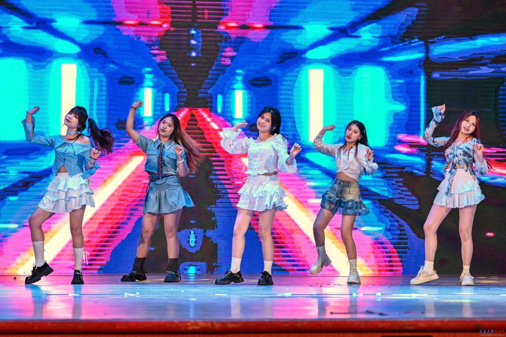 展演共分三個篇章,雅樂社團一首《鹿鳴》跨越時光長河,將我們帶入到王謝堂前,國際教育學院和國際交流協會的留學生們奉獻了一場充滿異國情調和濃郁民俗風情的火箭節舞蹈《花樣年華》,青年志愿者協會的歌曲串燒《青春樂章》、外語學院藝術團的《身騎白馬》、社團管理部的《197653》,用歌聲描摹著青春的模樣,跆拳道協會的《入道》、師范學院和源泉劇社合作的《燃燭》、紅帆船藝術團和青瀾舞蹈團呈現的舞蹈《青春灼灼》、《茶韻》,將展演氣氛不斷推向高潮,隨著大學生藝術團帶來的歌伴舞《向光而行》表演結束,閉幕展演完美謝幕。