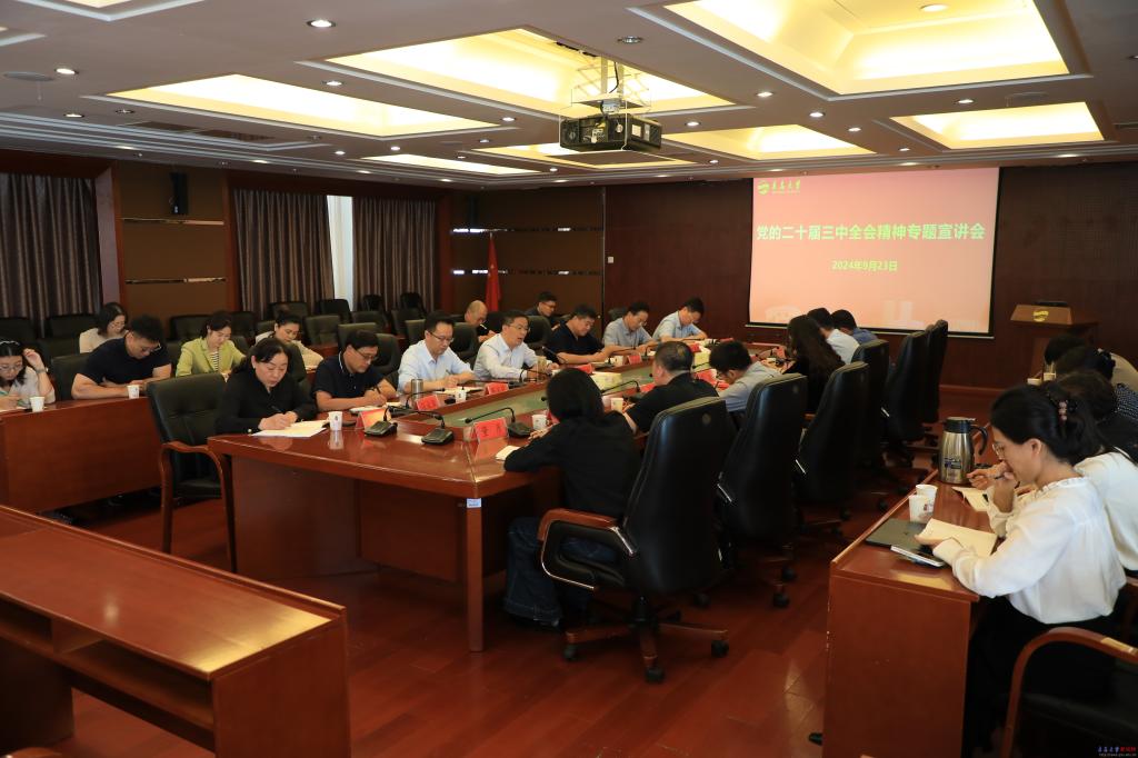 新聞網(wǎng)訊 9月23日,校黨委副書(shū)記胡欽曉在辦公樓407會(huì)議室宣講黨的二十屆三中全會(huì)精神,黨委辦公室、校長(zhǎng)辦公室黨支部、黨委宣傳部黨支部、人力資源處黨支部全體成員參會(huì)。
