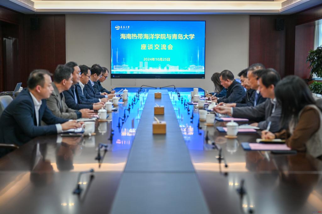符成彥對青島大學(xué)給予的熱情接待表示感謝,并介紹了海南熱帶海洋學(xué)院的基本情況。他表示,近年來青島大學(xué)不斷提升科技創(chuàng)新能力,取得了豐碩成果和快速發(fā)展。期待兩校進一步加強合作,開啟兩校協(xié)同發(fā)展新局面。海南熱帶海洋學(xué)院黨委常委、副校長廖民生圍繞學(xué)科建設(shè)、人才培養(yǎng)等方面工作進行了交流。