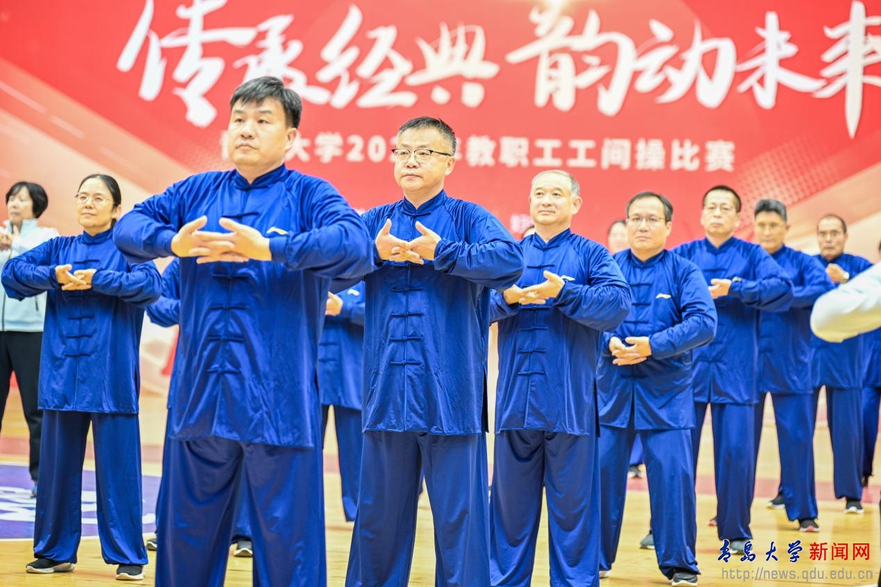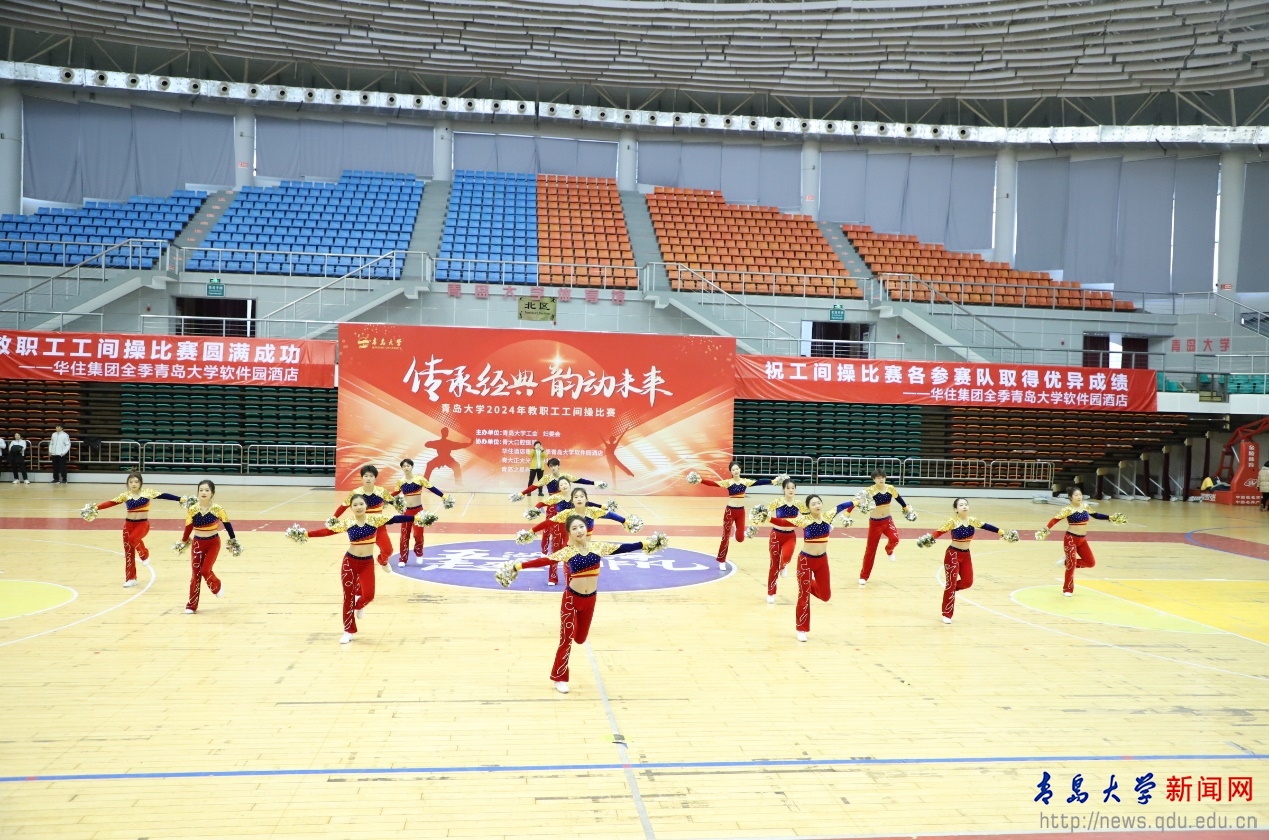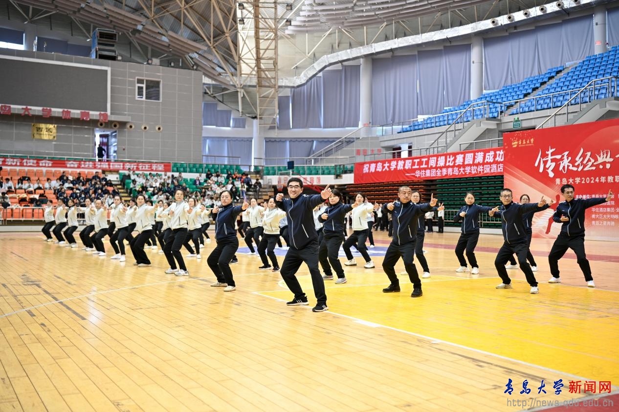 新聞網訊 11月28日下午,我校2024年“傳承經典 韻動未來”工間操比賽在浮山校區體育館舉辦。來自全校29個學院和單位的34支參賽隊伍、523名教職醫務員工同臺競技,呈現出健康活潑、充滿自信的教職工風貌。青島理工大學工會主席董典同、青島科技大學工會主席郭永、青島農業大學工會主席王清春作為比賽評委出席活動。校黨委副書記肖江南參加活動并講話。