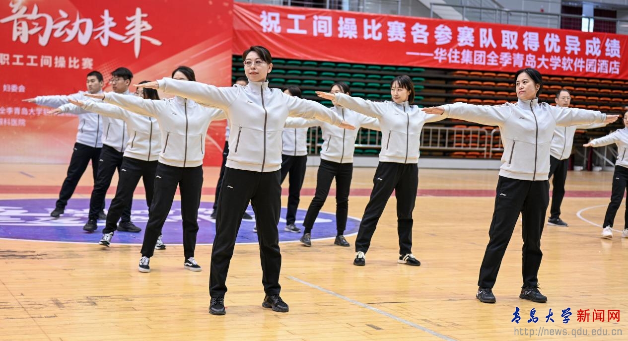 比賽現場,各參賽隊伍身著統一的服裝,以飽滿的熱情整齊劃一地展示八段錦和第九套廣播體操的動作,展現了青大教職工積極向上、團結拼搏的昂揚風貌。評委們認真觀看,從動作規范、精神面貌、整體節奏等多個方面進行嚴格打分。比賽結束后,藝術學院學生為比賽獻上了激情洋溢的健美操表演。