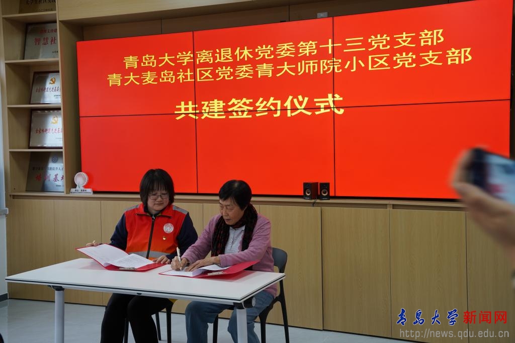 聯歡活動開始前,宋佐東、董媛媛分別致辭,簡要總結一年來的工作,對2025年合作共建提出期望,并簽訂青島大學離退休黨委與青大麥島社區黨委共建協議。青大離退休黨委十三黨支部書記孫明蘭與青大麥島社區黨委青大師院小區黨支部書記王堃簽訂黨支部共建協議。
