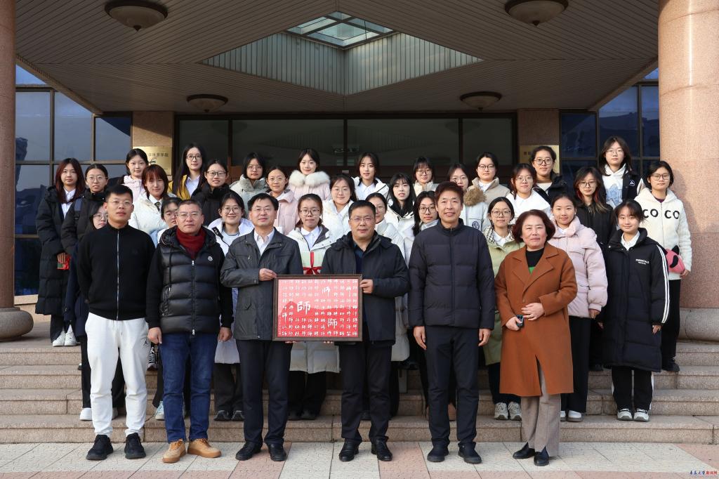 學(xué)生代表匯報(bào)了班級(jí)建設(shè)概況,并分享成長(zhǎng)經(jīng)歷和入學(xué)感悟。同學(xué)們表示回顧過往,收獲頗豐,未來會(huì)繼續(xù)保持高度的學(xué)習(xí)熱情和積極性,努力提升自我,為班級(jí)和學(xué)院的發(fā)展增光添彩。隨后,學(xué)生代表向胡欽曉贈(zèng)送“百師圖”手做文創(chuàng)產(chǎn)品。