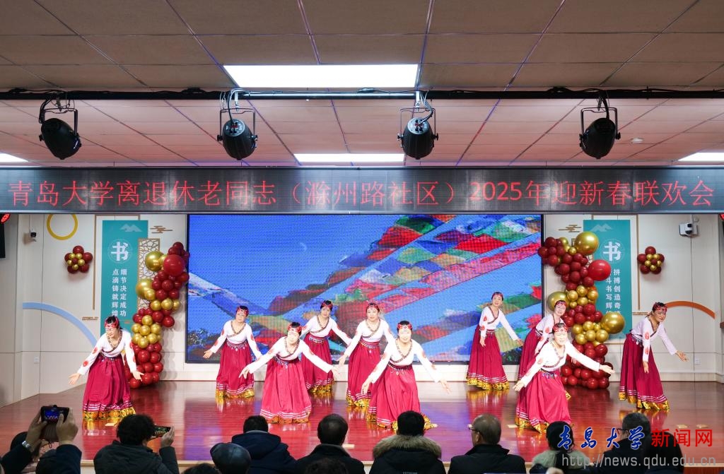 聯歡會演出了12個豐富多彩的節目,旨在弘揚中國傳統經典文化,傳播共筑中國夢的奮斗精神,讓大家感受到熱鬧喜慶文明幸福的濃濃的中國年味。青島大學離退休老教師朗誦協會表演了詩朗誦《中國聲音》《春來如期,只此青綠》《看夕陽》《善待暮年》;青島大學離退休老教師舞蹈四隊表演了舞蹈《牧區歡歌》;青島大學藝術學院的學生們表演了歌曲《映山紅》《等待》《共筑中國夢》,二胡獨奏《新賽馬》,鋼琴獨奏《茉莉花》,學生們現場與觀眾互動體驗——團扇創意制作受到觀眾們的喜愛;此次活動得到了青島大學藝術學院的大力支持,高水平的節目激發了觀眾的共鳴與共情;聯歡會在全體齊唱《歌唱祖國》中達到高潮。