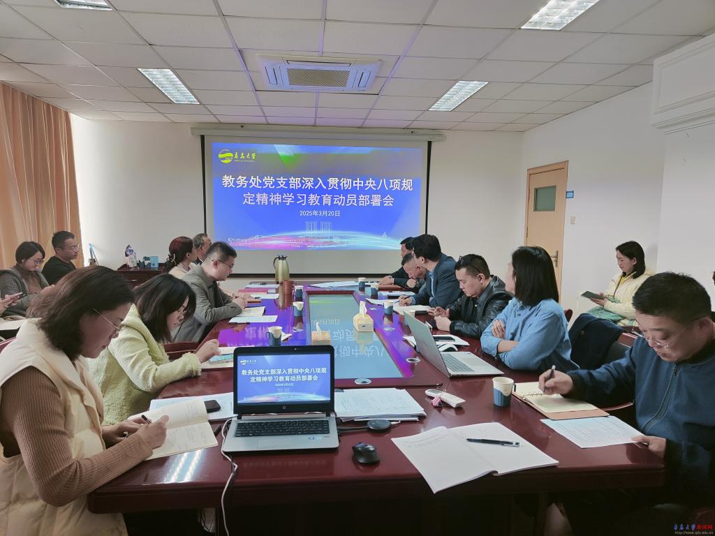 新聞網訊 3月20日下午,教務處在辦公樓405會議室召開全面從嚴治黨暨深入貫徹中央八項規定精神學習教育啟動部署會,部署安排開展深入貫徹中央八項規定精神學習教育相關工作和2025年全面從嚴治黨工作。教務處黨支部書記、處長馬澤剛主持會議,支部全體黨員參加會議。