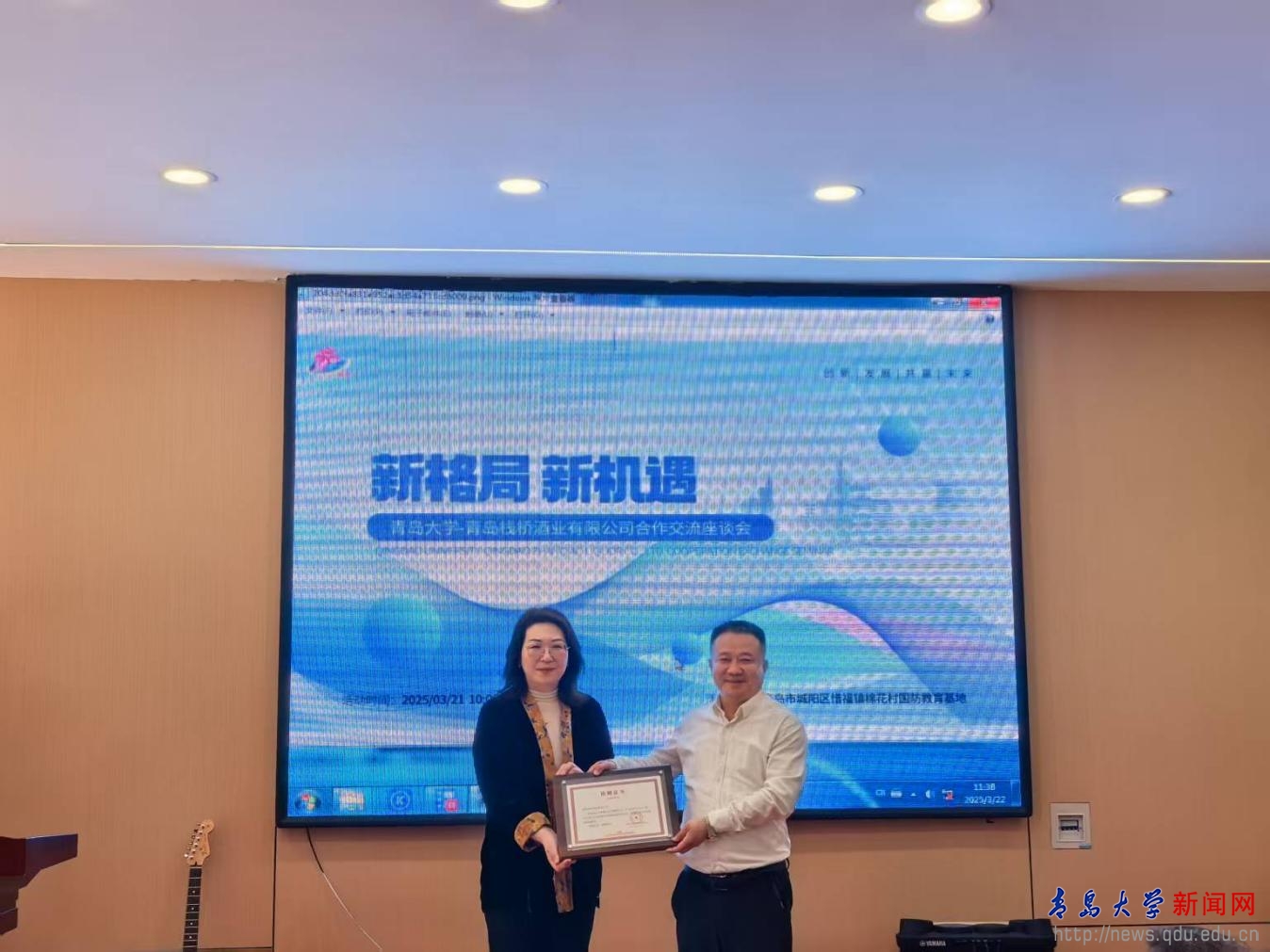 劉鳳昆對青島大學(xué)近年來的長足發(fā)展表示祝賀。他簡要介紹了青島棧橋酒業(yè)有限公司的發(fā)展歷史。他表示,青島棧橋酒業(yè)集團致力于傳統(tǒng)酒水文化的傳承與創(chuàng)新,此次與青島大學(xué)達(dá)成合作是集團借助高校科技與人力資源,實現(xiàn)跨越式發(fā)展的重要契機。他期待雙方的合作盡快結(jié)出碩果,為培養(yǎng)更多符合社會需求的高素質(zhì)人才,促進(jìn)產(chǎn)業(yè)升級,服務(wù)經(jīng)濟社會發(fā)展作出新的更大貢獻(xiàn)。