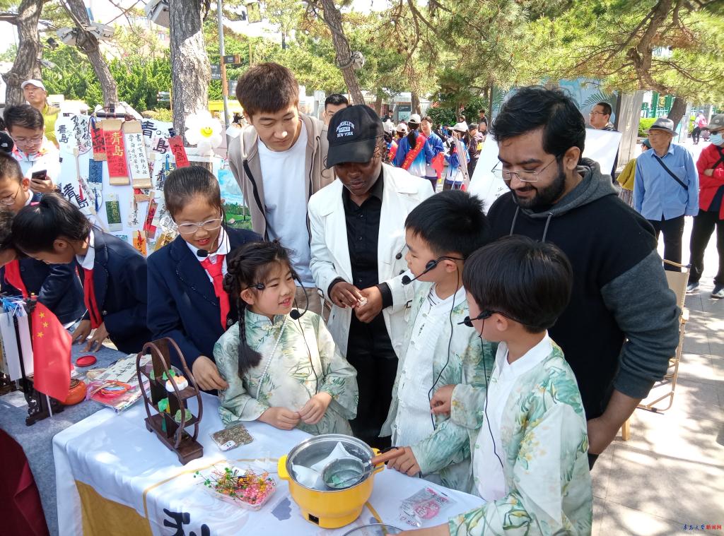 此次活動(dòng)整合大思政課堂、社會(huì)公益實(shí)踐服務(wù)和教育對外交流元素,凝聚大中小全學(xué)段、校家社協(xié)同育人合力,通過沉浸式外語實(shí)踐、互動(dòng)式文化體驗(yàn)、公益志愿服務(wù)等形式,講好中國故事,傳播中華優(yōu)秀傳統(tǒng)文化,打造出兼具本土特色與國際視野的市南教育新樣態(tài)。我校“青洋益彩” 留學(xué)生志愿服務(wù)團(tuán)的首次登場,也為活動(dòng)增添了國際交流的亮色,彰顯了學(xué)校推動(dòng)多元文化交融的積極探索。