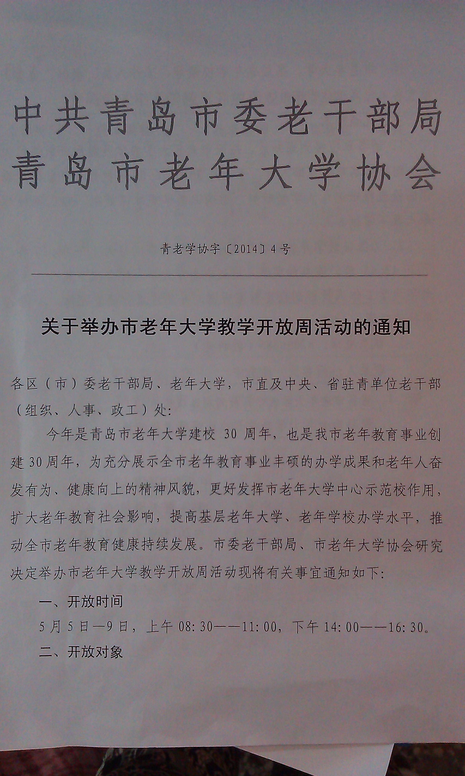 轉(zhuǎn)發(fā):關(guān)于舉辦老年大學(xué)教學(xué)開(kāi)放周活動(dòng)的通知